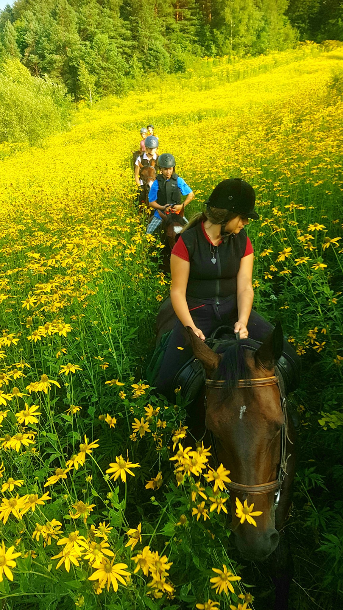 13 lekcji jazdy konnej – jedna godzina dziennie (poza dniem wyjazdu).